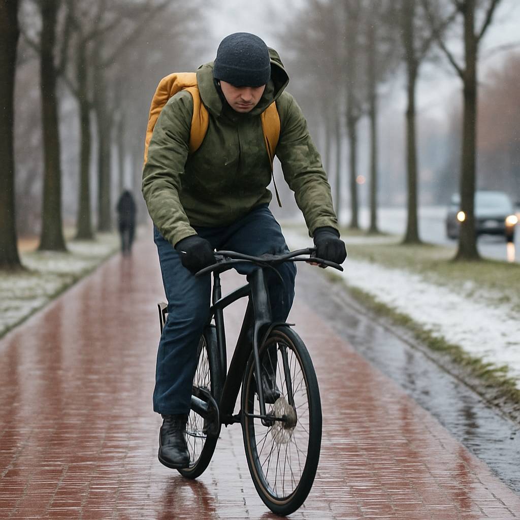 Winterweer in Nederland betekent zelden meters sneeuw, maar vooral nat, guur en wisselvallig. De temperatuur schommelt rond het vriespunt, de wind draait vrolijk mee met de buienlijnen en voor je het weet fiets je in een combinatie van motregen en tegenwind die nergens in de cijfers terug te zien is.
